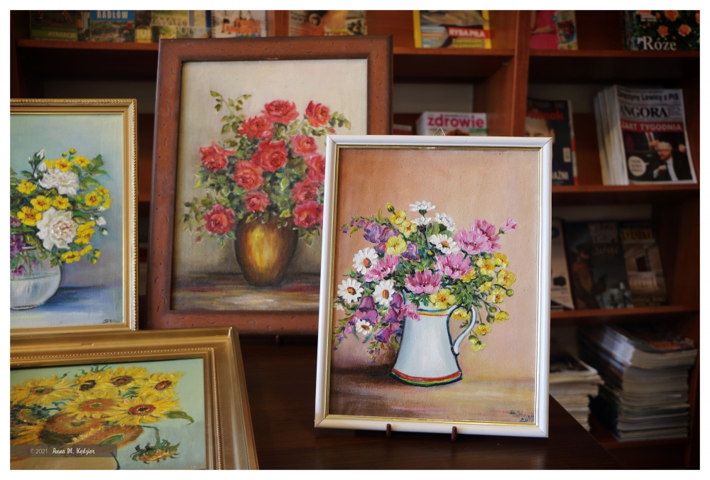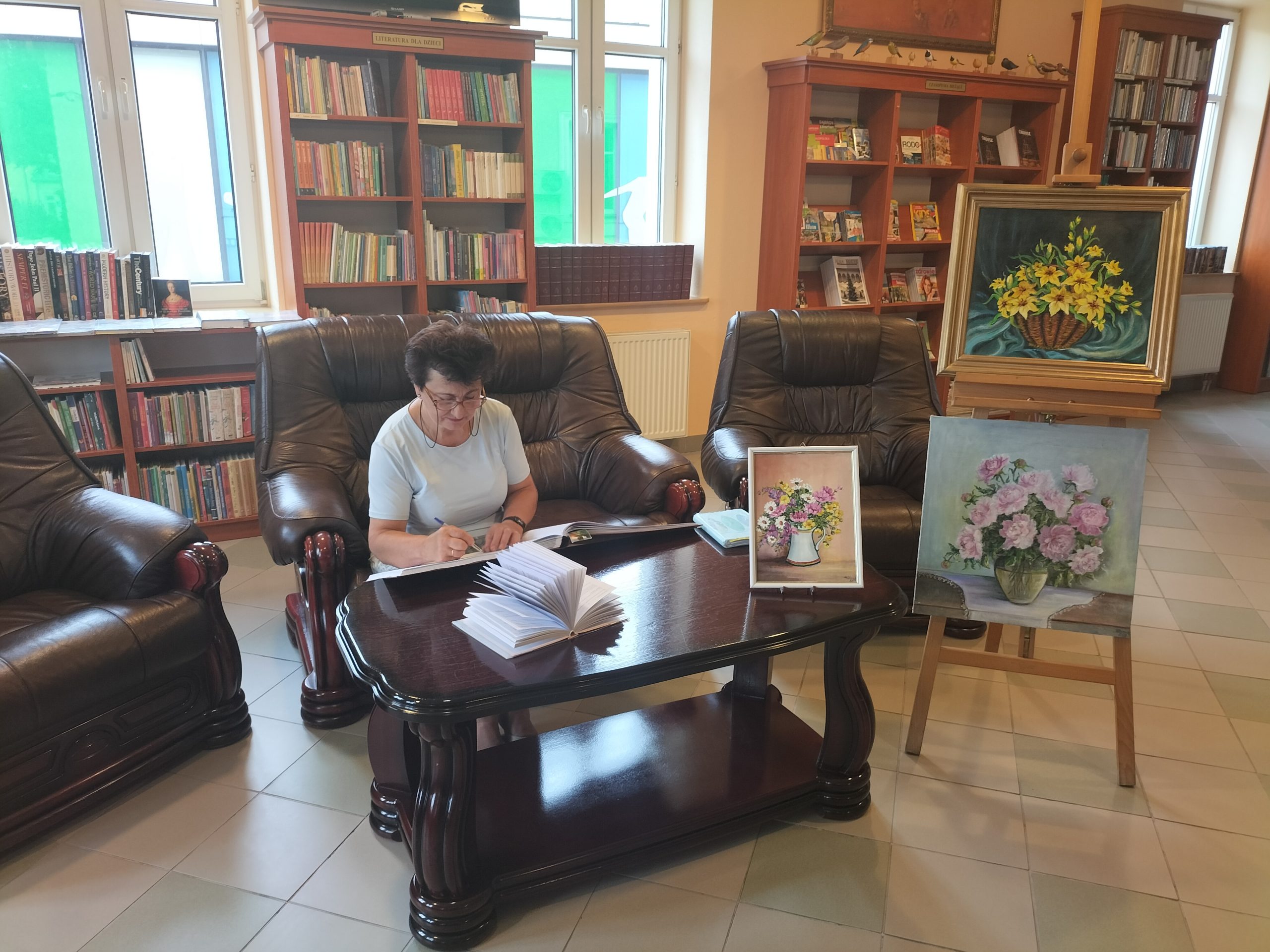 Miłym zaskoczeniem dla nas była wizyta pani Stefanii w Miejsko-Gminnej Bibliotece Publicznej w Radłowie, która przemierzyła kilkaset kilometrów, by dostarczyć nam jeszcze kilkadziesiąt nowych dzieł, których motywem przewodnim są kwiaty i pejzaże.