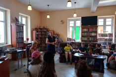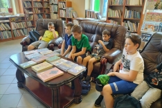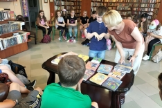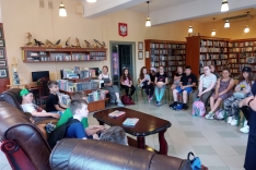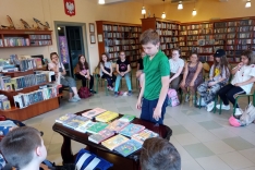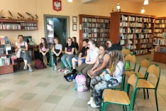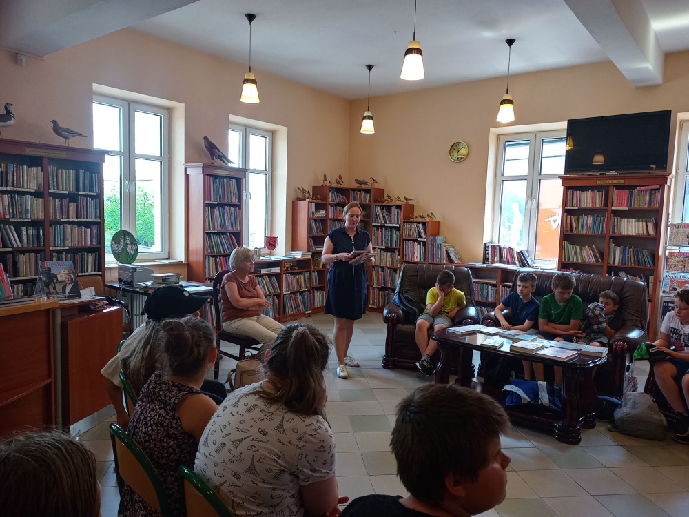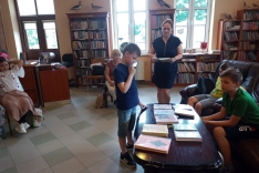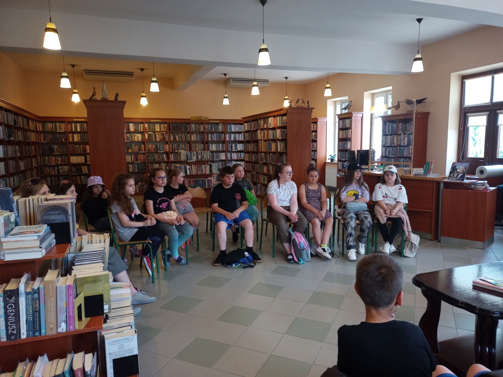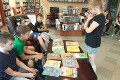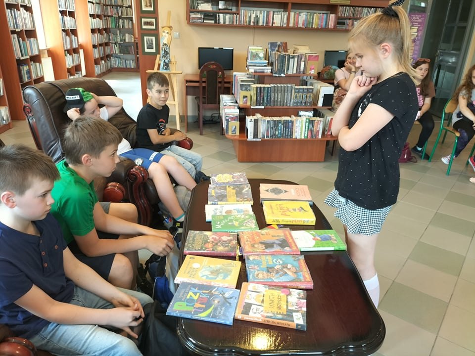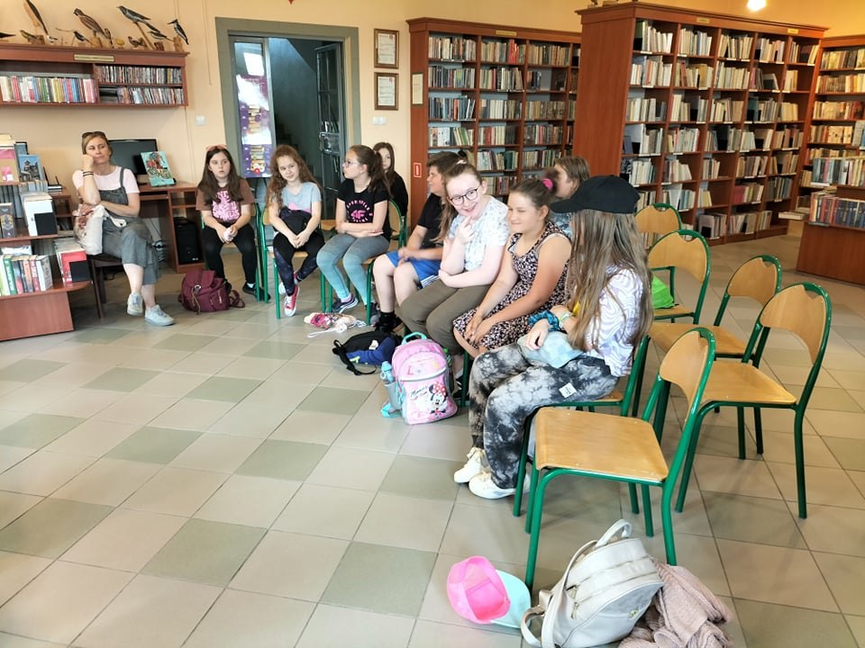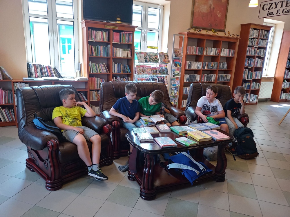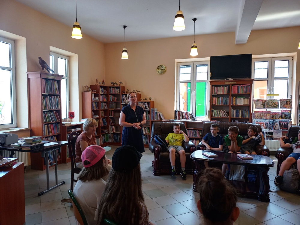 Czas spędzony wśród książek pozwolił na zapoznanie się z wnętrzem naszej książnicy, jej zasobami, jak również z książką Martyny Wojciechowskiej pt. „Zwierzaki świata”.