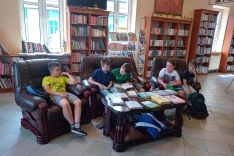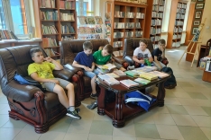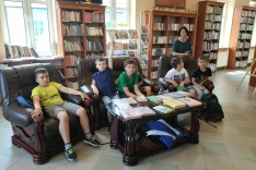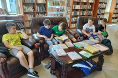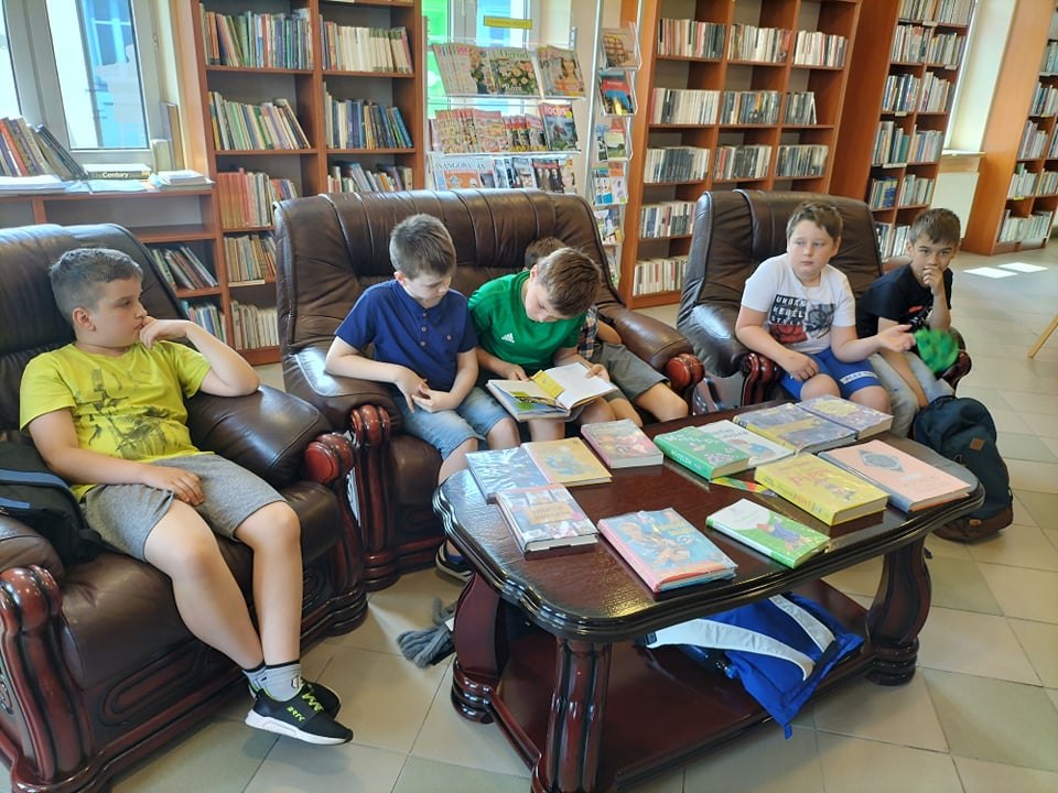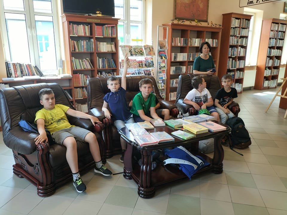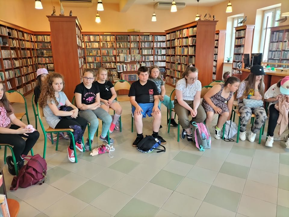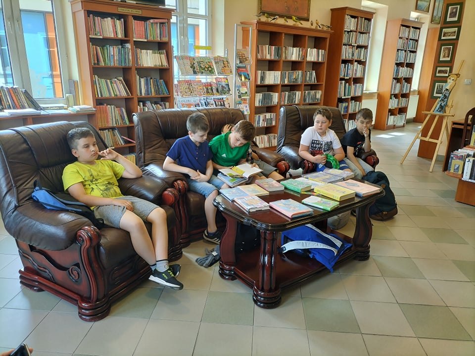 Trzecioklasiści i czwartoklasiści wraz z wychowawcami ze Szkoły Podstawowej w Łętowicach po aktywnym czasie spędzonym w kinie i kręgielni w Miejskim Centrum Kultury odwiedzili naszą bibliotekę.