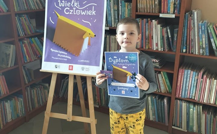 Tymoteusz Krzyżak uzbierał komplet naklejek na karcie Małego Czytelnika i zdobył imienny Dyplom Małego Czytelnika w ramach projektu Mała książka – wielki człowiek. Serdecznie gratulujemy.