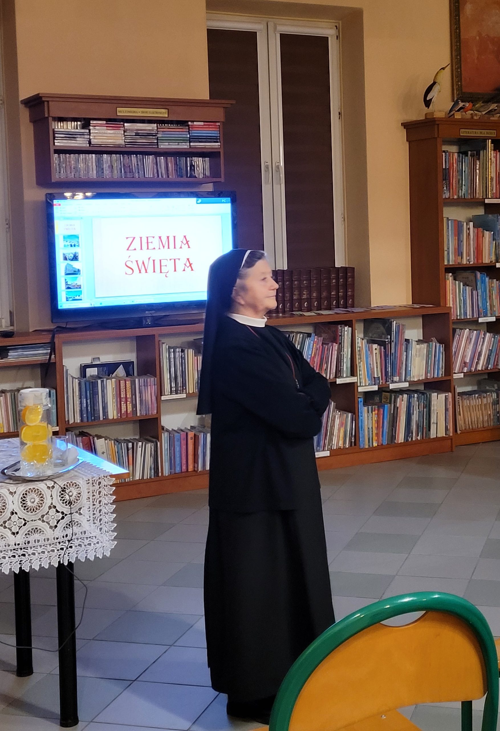 Taki tytuł miało czwartkowe spotkanie w bibliotece (14 grudnia), na którym siostra Iwona ze Zgromadzenia Sióstr Jezusa Miłosiernego opowiedziała o swoich wrażeniach/impresjach z majowej podróży do Ziemi Świętej. Wspaniałe zdjęcia, barwne opisy miejsc i ludzi oraz głębokie doświadczenie obecności Boga w tym szczególnym dla wielu religii miejscu pozwoliły słuchaczom niemal fizycznie poczuć Jerozolimę.