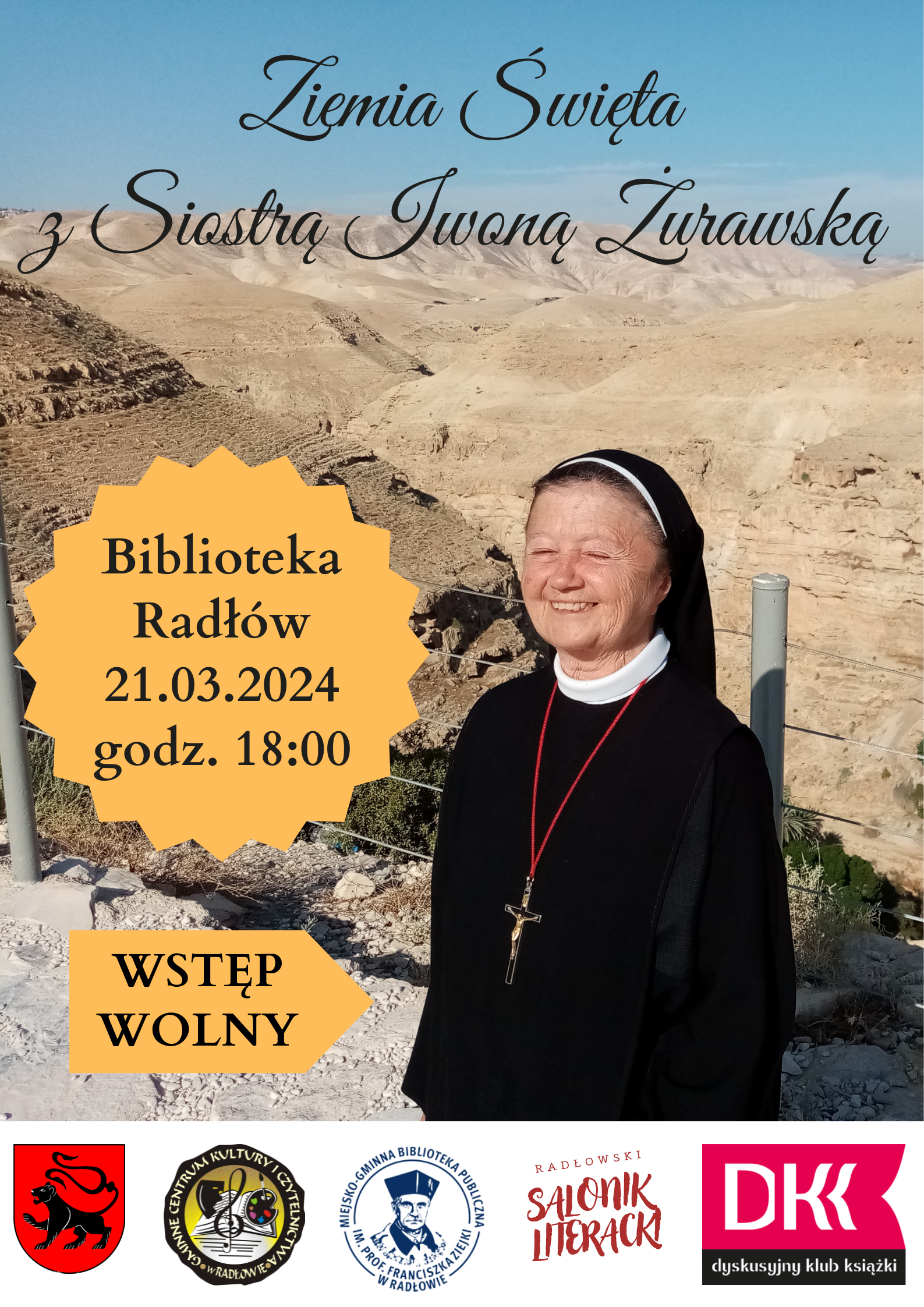 Serdecznie zapraszamy 21 marca (czwartek) na godzinę 18.00 do radłowskiej biblioteki na drugie spotkanie z siostrą Iwoną, która oprowadzi nas po Ziemi Świętej, śladami Pana Jezusa i Jego Matki.