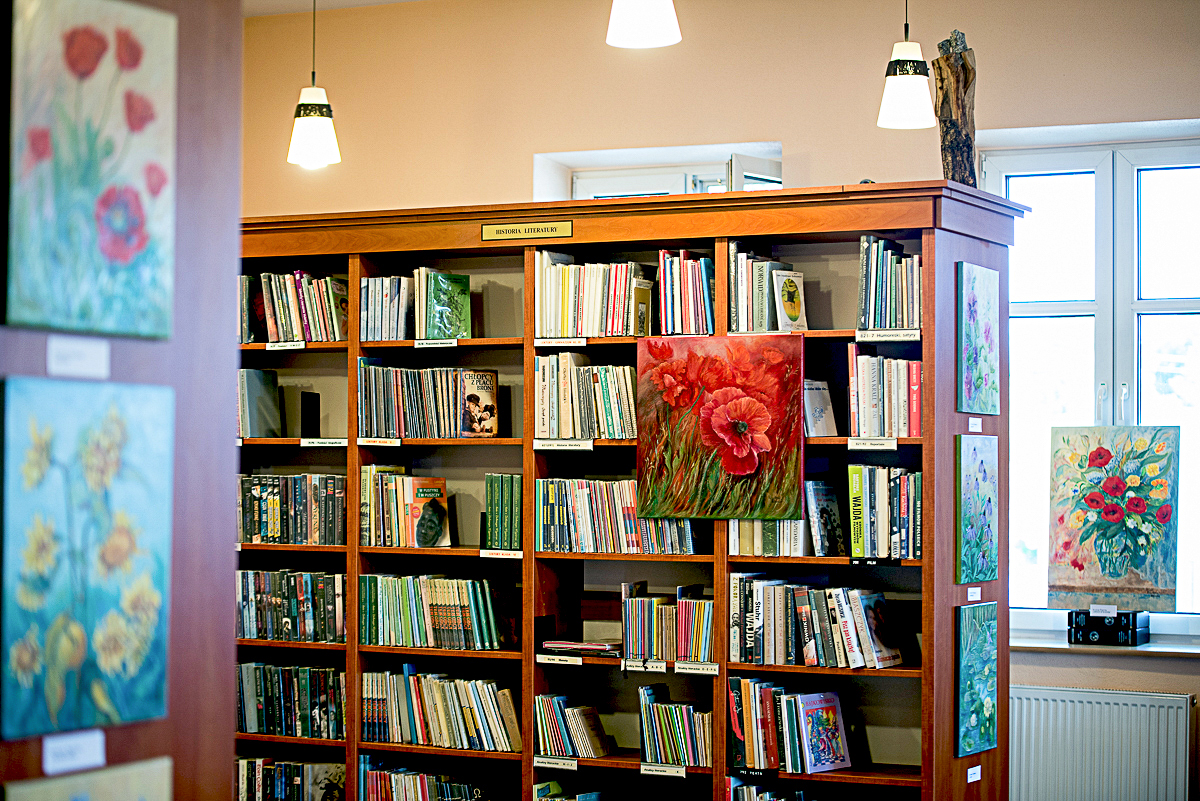 Na fot.: bibliotekę zdobi malarstwo Krystyny Wigurskiej z Łysej Góry