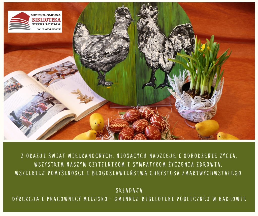 Aktualności Życzenia Wielkanocne 13 kwietnia 2022 Katarzyna Baran Na fot. Olej na desce – Anna Kędzior, pisanki – Piotr Garncarz.